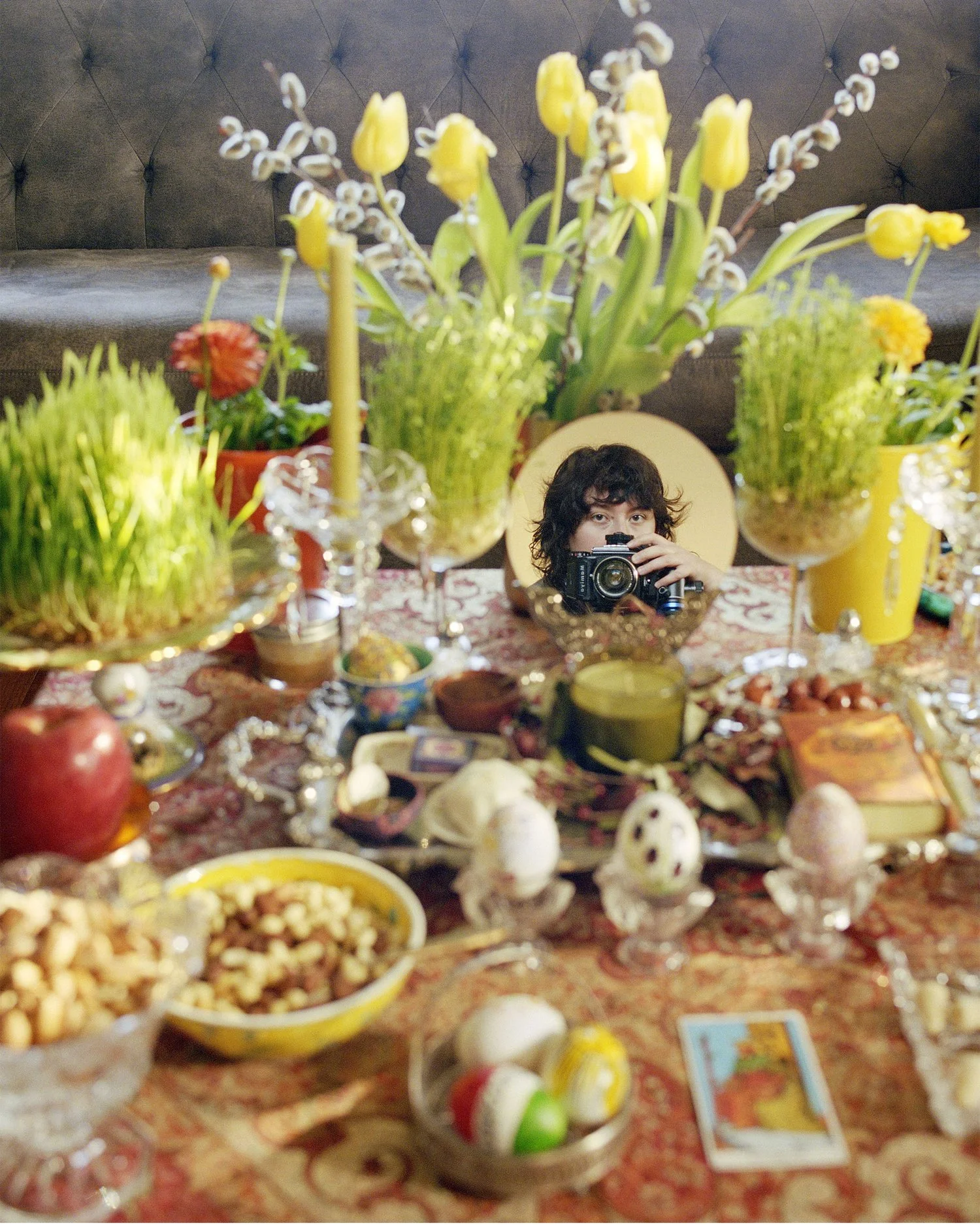 Drawing on the narrative structures of Persian literature and Iranian New Wave Cinema, the work uses allegory and symbolism as a language to emphasize details that reveal an underlying story existing beyond the frame. Within the topography of the work, elements of the natural world and ritualistic objects become referential to the visual language of Iranian mysticism and cultural traditions. Color and light act as punctuation for slow-moving, lyrical stanzas, while flora and fauna call to cycles of resistance, rebirth, and renewal. Traditional and historical processing techniques enable the photographic object to explore the passage of time as a tangible experience. Creating images with a personal and cultural symbology in mind, my work is a means of storytelling, folklore and method of spiritual devotion.
