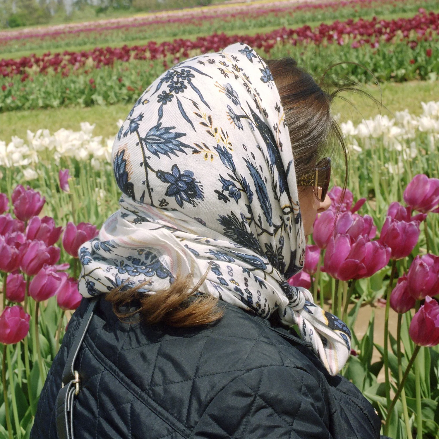 Elegy For a Latent Grief is a new body of work that explores intergenerational trauma and the intricacies of my familial relationships. Building on the visual language of Iran, a story is told through metaphors. Patterns of flowers are ubiquitous, weaving their way strategically through my imagery. Tulips are seen as a symbol of martyrdom in Iran; one of the most prominent symbols of the 1979 Islamic Revolution, and more recently reimagined as a symbol of rebellion towards the current regime. A portrait following my mother in a field of tulips contemplates that turning point, acknowledging the sacrifices Iranian women have made for their freedom of choice. The tulip, hydrangea and forsythia flowers all hold a presence throughout this story. Being perennial blooms, once fallen they do not die, but are preparing to rise again as part of a perpetual growth cycle where each season they are reborn. In a collage saturated in yellow, an image of my mother’s forsythia trees sits behind a family photo of my grandmother. She poses with her garden in Tehran, which wilted and died permanently after her daughter left for America.