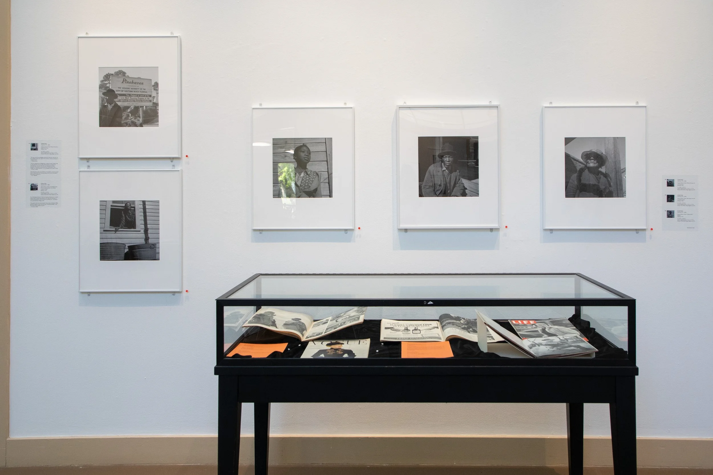The bulk of this exhibition was restored and printed by former Photography Lab Technician Daniel Burns. Images in this exhibition taking place in Washington, D.C. Harlem, New York and Haverstraw, New York saw over a year-long process in the Digital Lab at Lutnick Fine Arts Center, Haverford College. The photos selected from Gordon Parks’ time in Daytona Beach were restored and printed by current Photography Lab Technician Shaina Nyman, and saw a one month process from research, to final framed photographs. After experimenting with various papers, Burns selected two versions of Fine Art Baryta paper. This type of paper originates from the traditional black and white darkroom. The name Baryta is derived from the layer of Barium Sulphate which stops darkroom chemistry from affecting the fiber base of the paper, and further enhances shadow density of the image. The prints in this exhibition have been created with the intention of highlighting Gordon Parks’ artistry with lighting, and choosing a paper reminiscent of a darkroom print was a detail integral to reproducing his work faithfully. The final prints were allowed to dry overnight in the Photography Lab, then stored in archival sleeves until the process of matting, framing and installation began.”